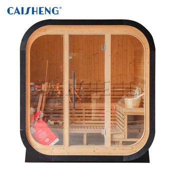 2025 Caisheng di buona qualità prezzo di fabbrica 4 persone all'aperto giardino cubo di abete carbonizzato Sauna con stufa a legna